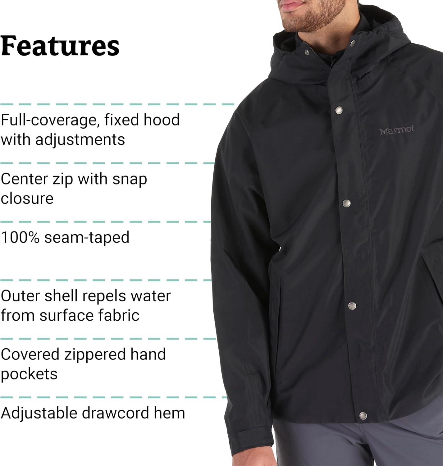 MARMOT Men’s Cascade Durable & Waterproof Rain Jacket(Black)