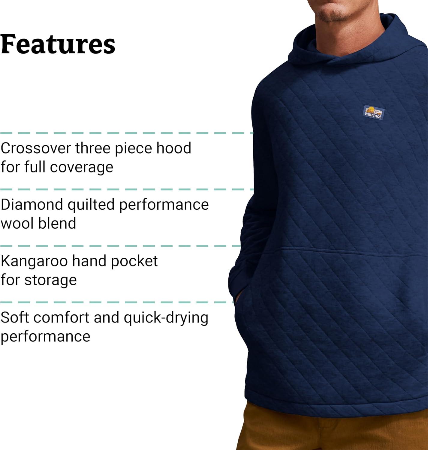 Cozy up in a diamond-quilted hoody made for early starts, late nights, and all the shenanigans in between. Wool and polyester combo gives you soft, quick-drying comfort for smooth transitions from chilly weekdays to cabin weekends off the grid. Kangaroo hand pocket comes in handy for warming your hands up when you're snuggling up next to the campfire or when you need to quickly stash your phone when your climbing buddy calls “belay on”. Crossover hood ensures your ears and neck get the same warm and soft treatment from your waist up.