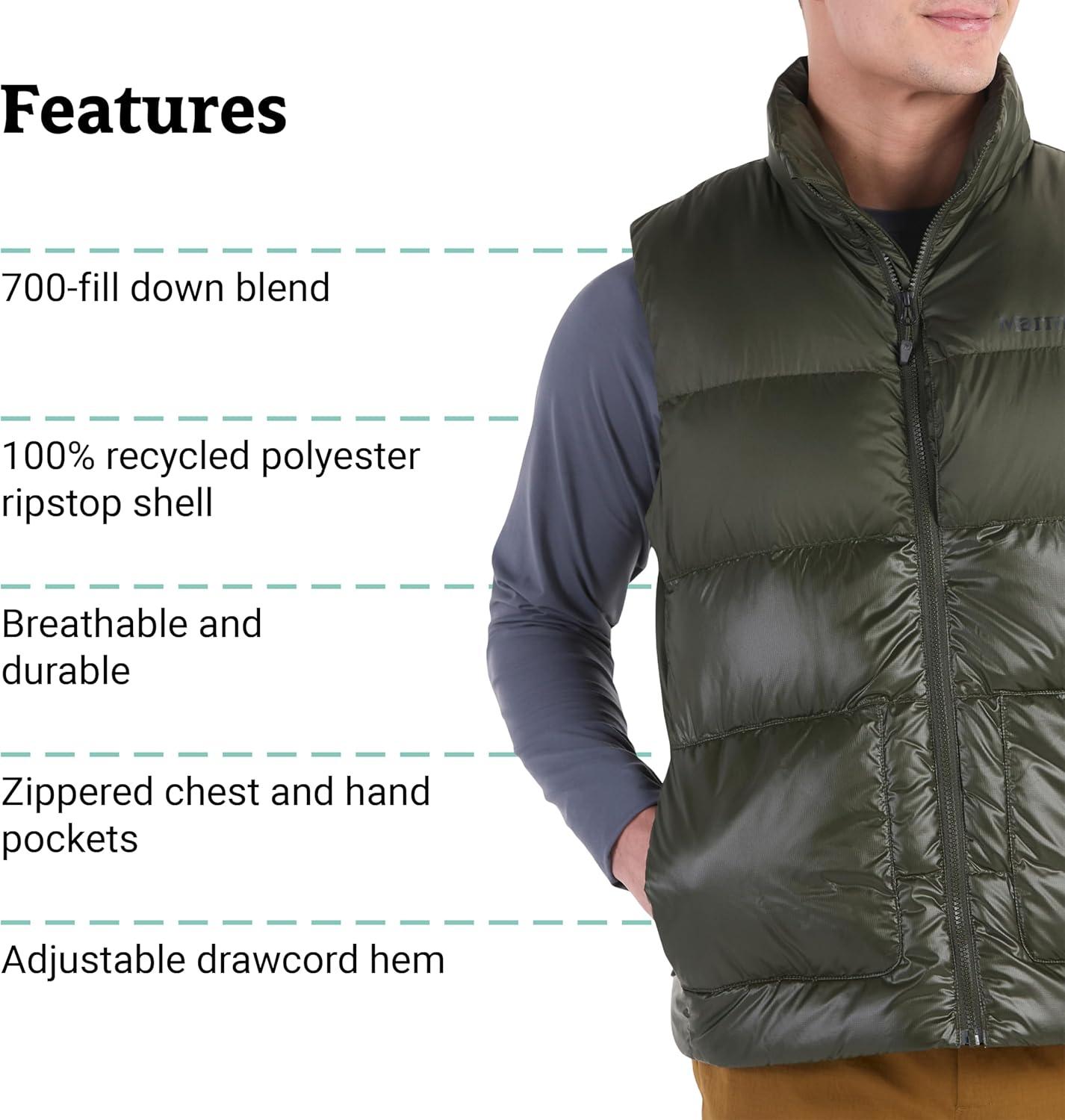 imageMARMOT Mens Guides Down Vest  700Fill Insulated WaterResistant Lightweight PufferVetiver