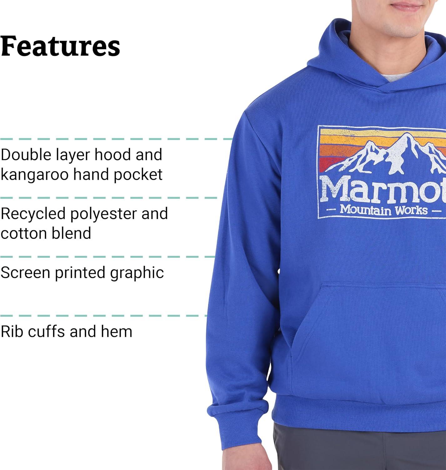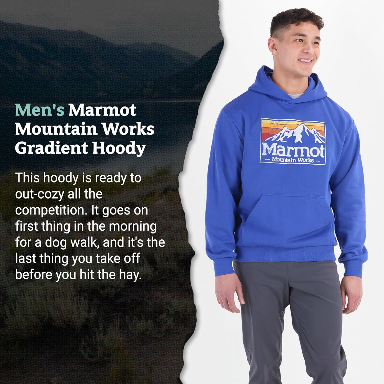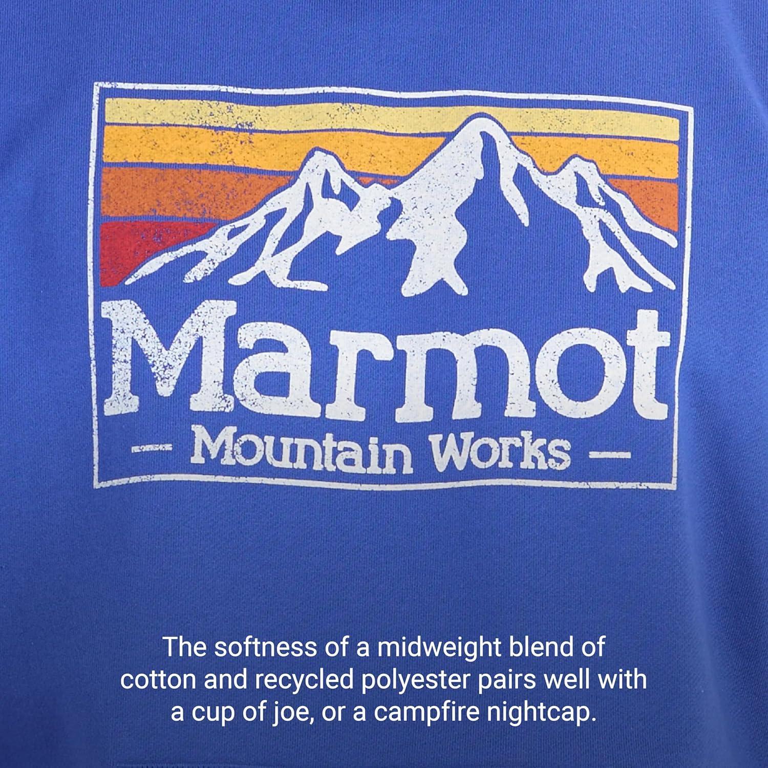 This soft, midweight blend of cotton and recycled polyester is easy and comfortable, featuring a gradient Marmot graphic.