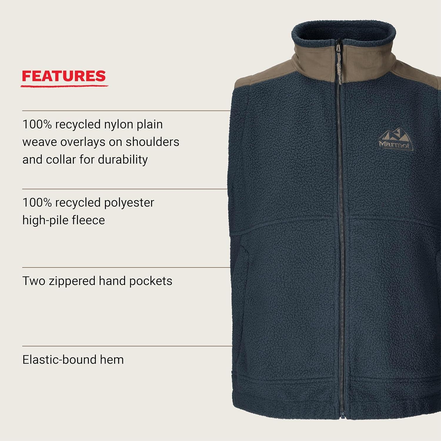 MARMOT Mens Wanderer High Pile Fleece Vest(Thunderhead/Claystone)