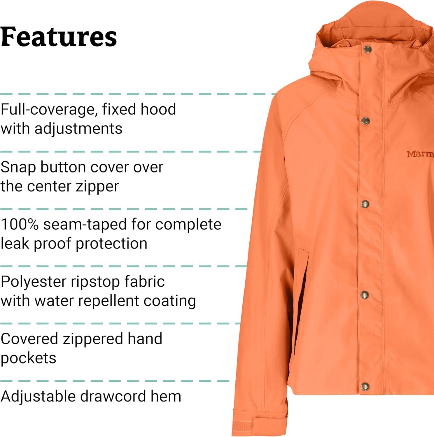 MARMOT Women’s Cascade Durable & Waterproof Rain Jacket(Pomelo)