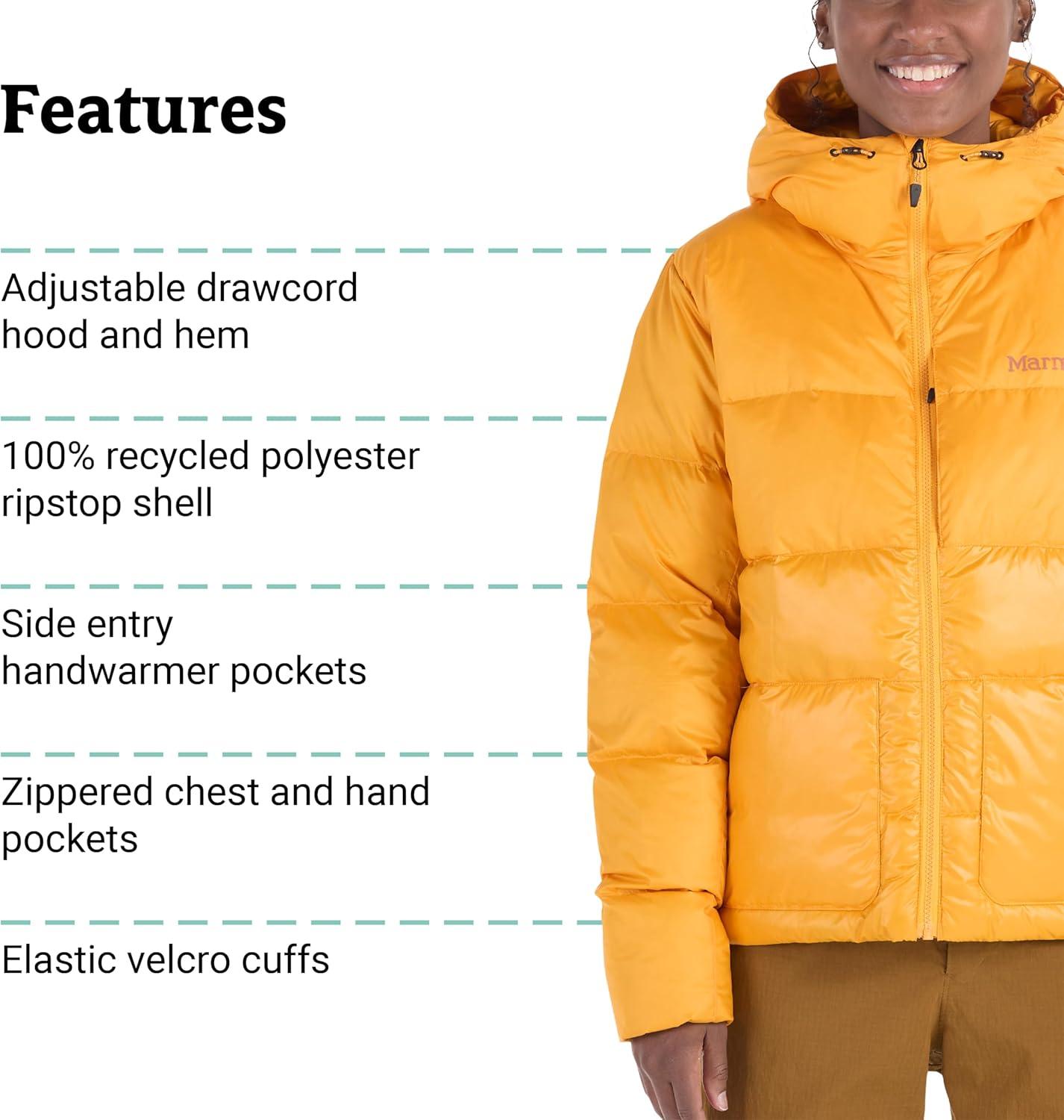 MARMOT womens Women’s Guides Down Puffer Jacket With Hood, 700-fill Insulated(Golden Sun)