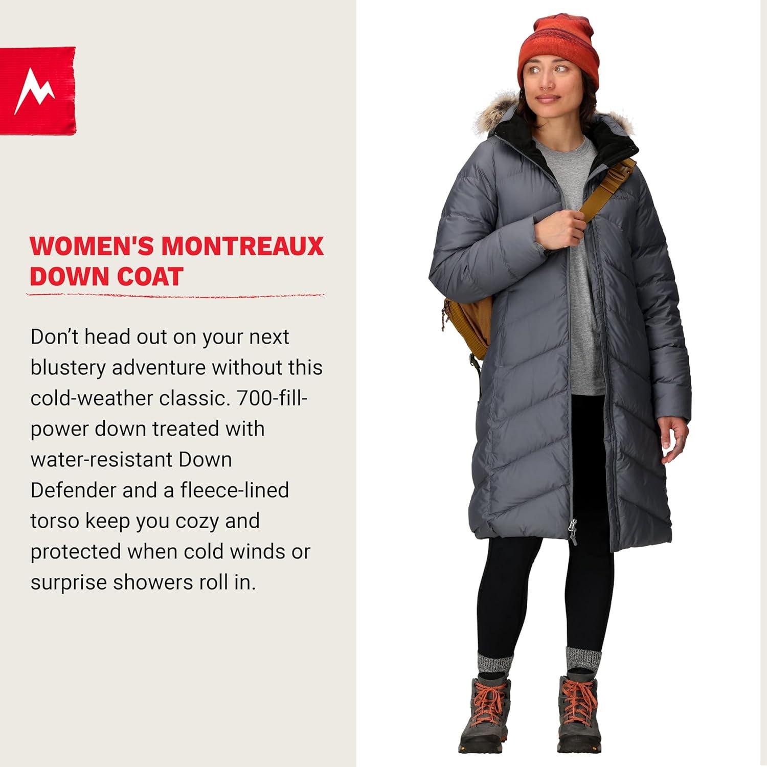 You don't want to head out for your next blustery adventure without the Women's Montreaux Parka. Its classic exterior is suited for both day and night wear, while its interior boasts features that'll keep you snug and warm. Treat yourself to its compact-yet-powerful 700 fill-power-down (treated with water-resistant Down Defender for unforeseen rain), fleece-lined torso that adds a layer of wind protection, and fleece-lined handwarmer pockets and wrist cuffs for all-around comfort. Small extras go a long way in its removable hood and synthetic fur ruff, interior zipper and drop pockets, and two-way zipper that prevents the jacket from bunching up.